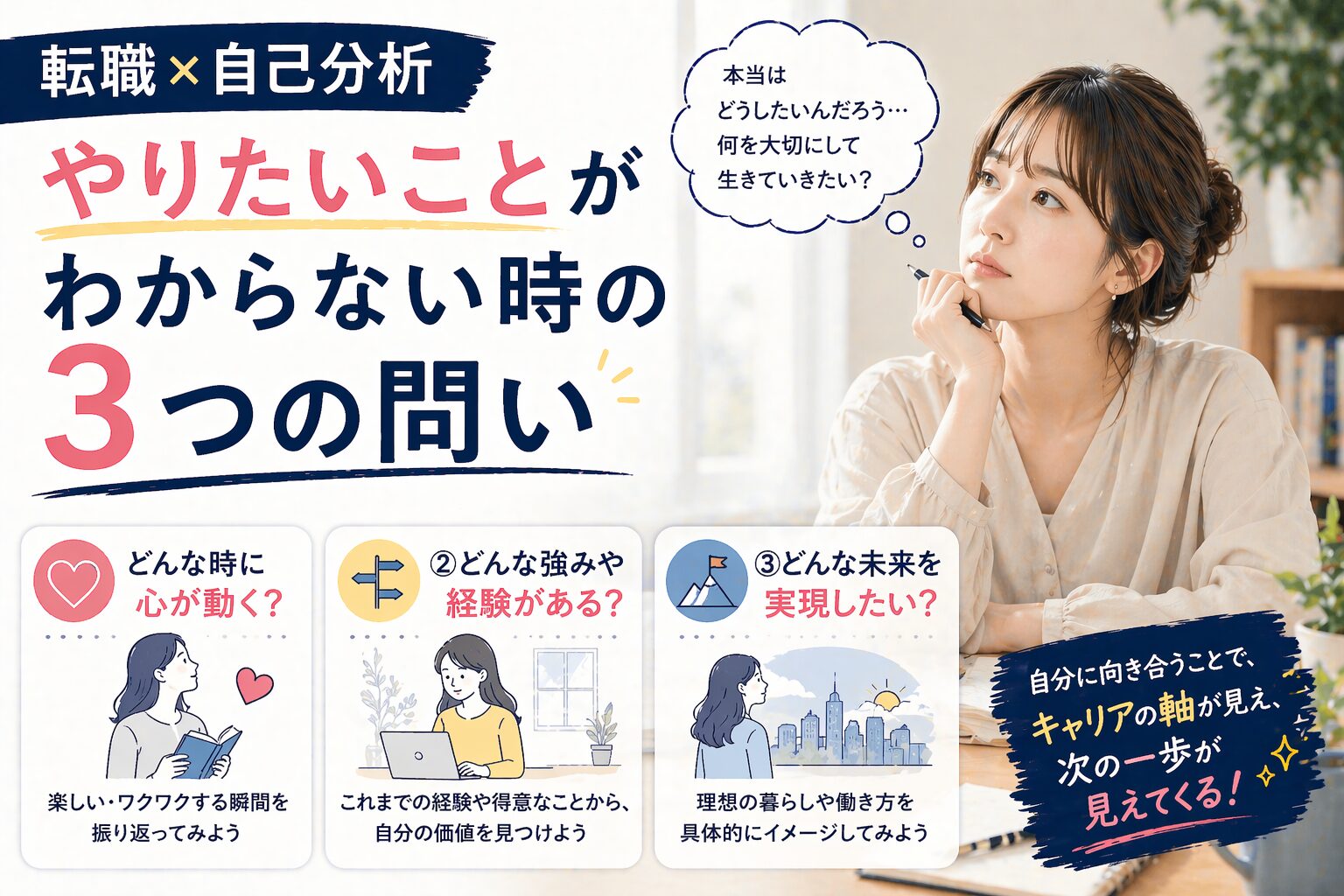 この記事では、自己分析を通じて転職でやりたいことがわからないと感じたときに実践できる3つの問いをご紹介します。特別なツールも強い意志も必要ありません。ノートとペン、あるいはスマートフォンのメモアプリがあれば、今日からでも少しずつ試してみることができます。