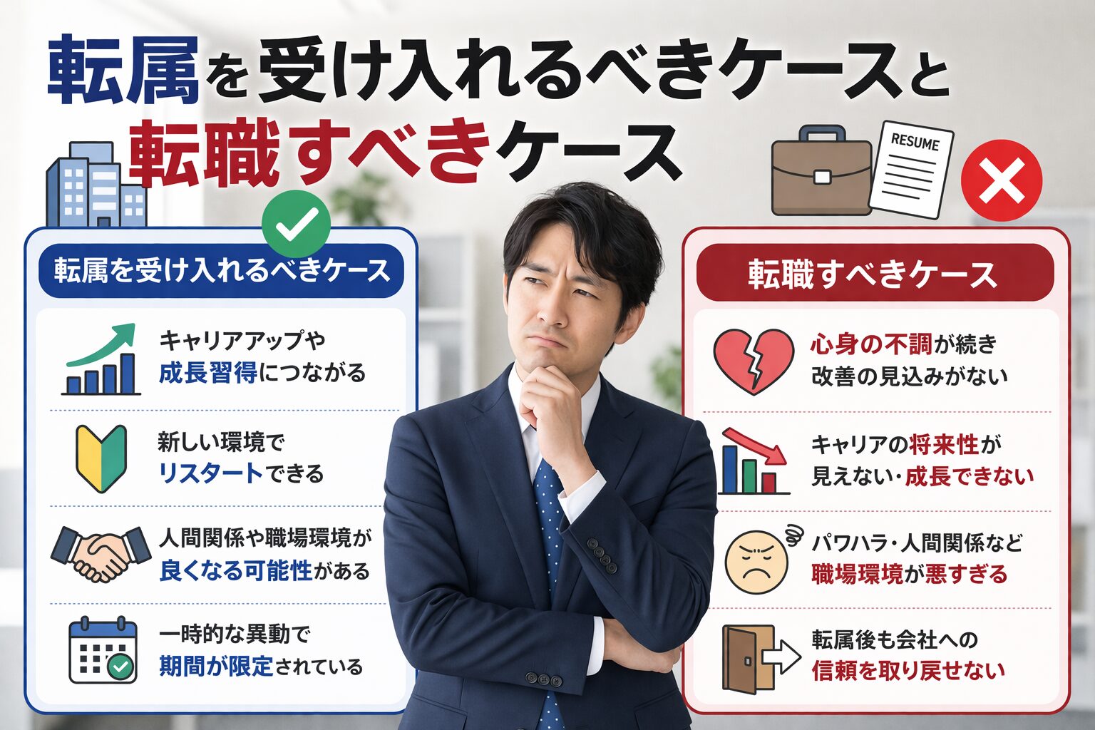 この記事では、転属を受け入れるべきケースと、転職を検討すべきケースを整理します。
